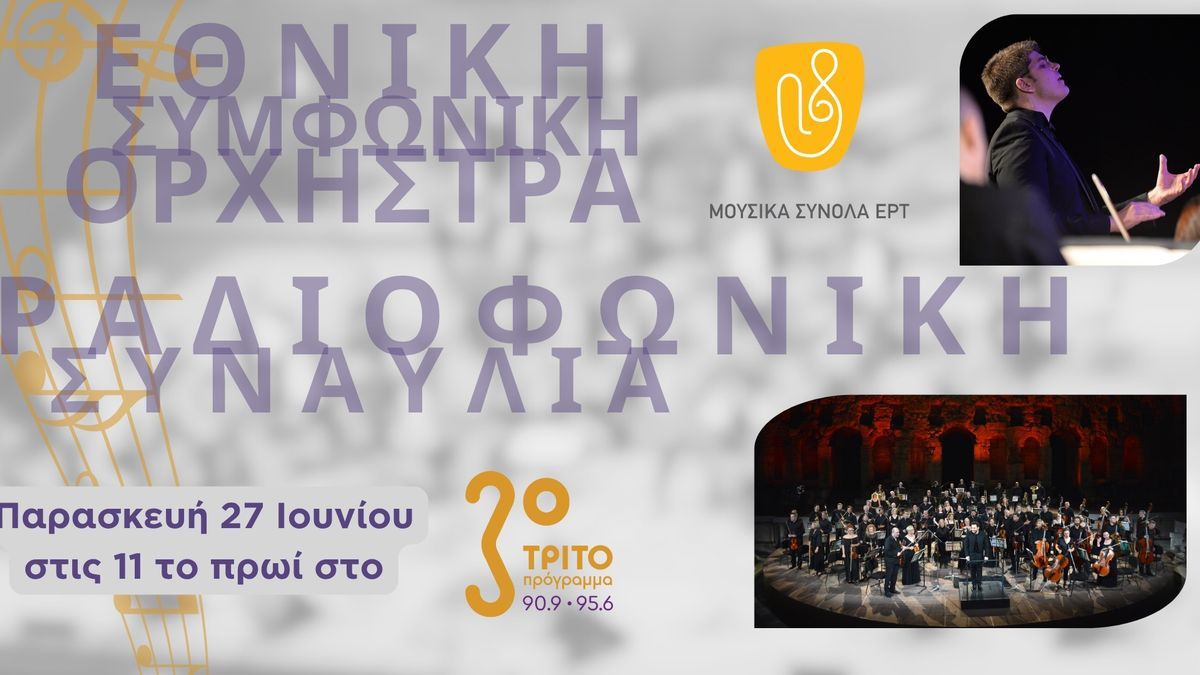 Το Τρίτο Πρόγραμμα της Ελληνικής Ραδιοφωνίας θα μεταδώσει την Παρασκευή 27 Ιουνίου 2025, στις 11:00 το πρωί, τη συναυλία της Εθνικής Συμφωνικής Ορχήστρας της ΕΡΤ. Η συναυλία αυτή θα πραγματοποιηθεί απευθείας από το στούντιο C και θα καθοδηγηθεί καλλιτεχνικά από τον διακεκριμένο Ρωμανό Παπάζογλου.