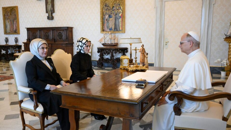 Σήμερα, στις 2 Ιουλίου, η Εμινέ Ερντογάν, σύζυγος του προεδρίου της Τουρκίας Ρετζέπ Ταγίπ Ερντογάν, και η κόρη τους Εσρά Ερντογάν Αλμπαϊράκ, πραγματοποίησαν μια σημαντική συνάντηση στην Αγία Έδρα με τον Πάπα Λέοντα ΙΔ’. Αυτή η συνάντηση έρχεται σε μια κρίσιμη περίοδο για την περιοχή, υπογραμμίζοντας τη σημασία του διαλόγου μεταξύ των θρησκειών και των πολιτισμών.