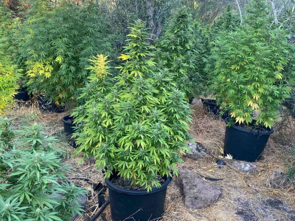 Οι δύο φυτείες σε κοντινή απόσταση μεταξύ τους, η πρώτη με 73 δενδρύλλια κάνναβης ύψους έως 3,5 μέτρα τοποθετημένα σε γλάστρες, αλλά και οκτώ δενδρύλλια κάνναβης εκριζωμένα σε στάδιο αποξήρανσης και διάφορα εργαλεία και αντικείμενα καλλιέργειας. Η δεύτερη εντός περιφραγμένου αγροκτήματος με 44 δενδρύλλια κάνναβης (τύπου skunk), ύψους από -0,8- μέτρα έως 1,5 μέτρα και καλλιεργητικά εργαλεία.